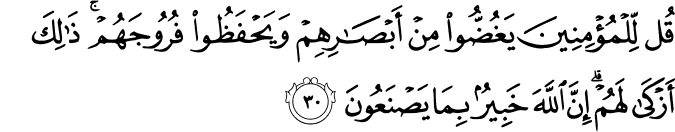 Muhsin Khan Tell the believing men to lower their gaze (from looking at forbidden things), and protect their private parts (from illegal sexual acts, etc.). That is purer for them. Verily, Allah is All-Aware of what they do.