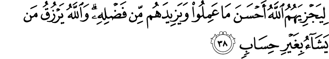 Muhsin Khan That Allah may reward them according to the best of their deeds, and add even more for them out of His Grace. And Allah provides without measure to whom He wills.