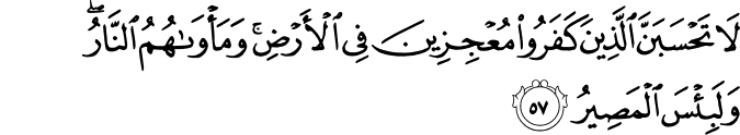 Pickthall Think not that the disbelievers can escape in the land. Fire will be their home - a hapless journey's end!