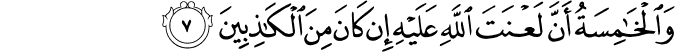 Muhsin Khan And the fifth (testimony) (should be) the invoking of the Curse of Allah on him if he be of those who tell a lie (against her).